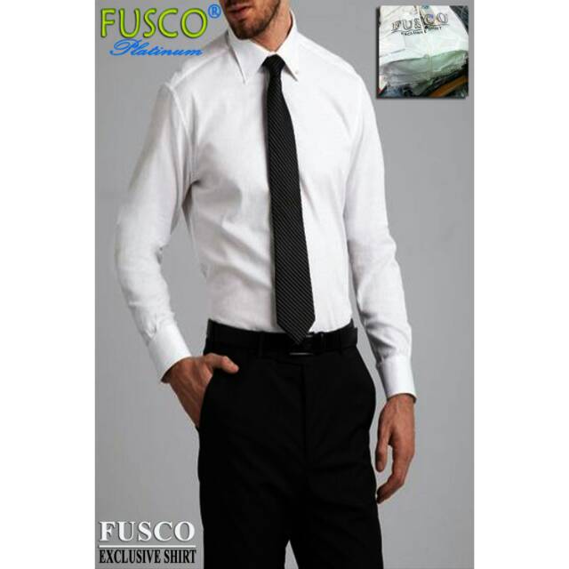 Kemeja putih polos satu paket dengan dasi polos hitam doff.
