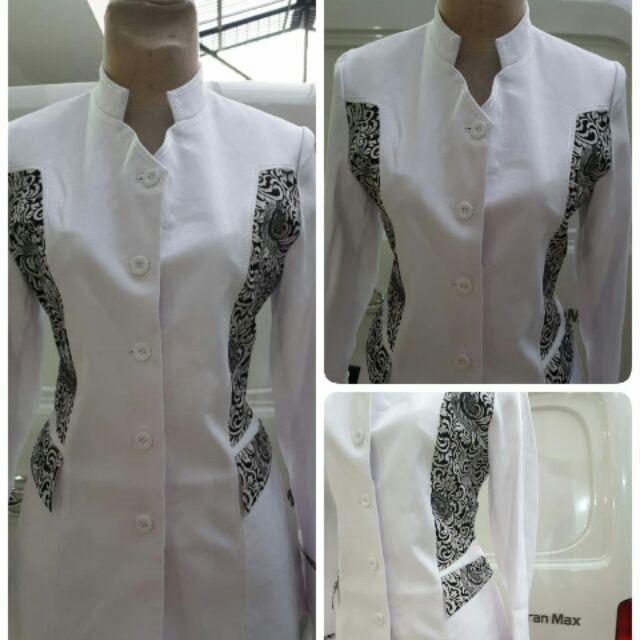 Download Kemeja Putih Wanita Kombinasi Batik Gif